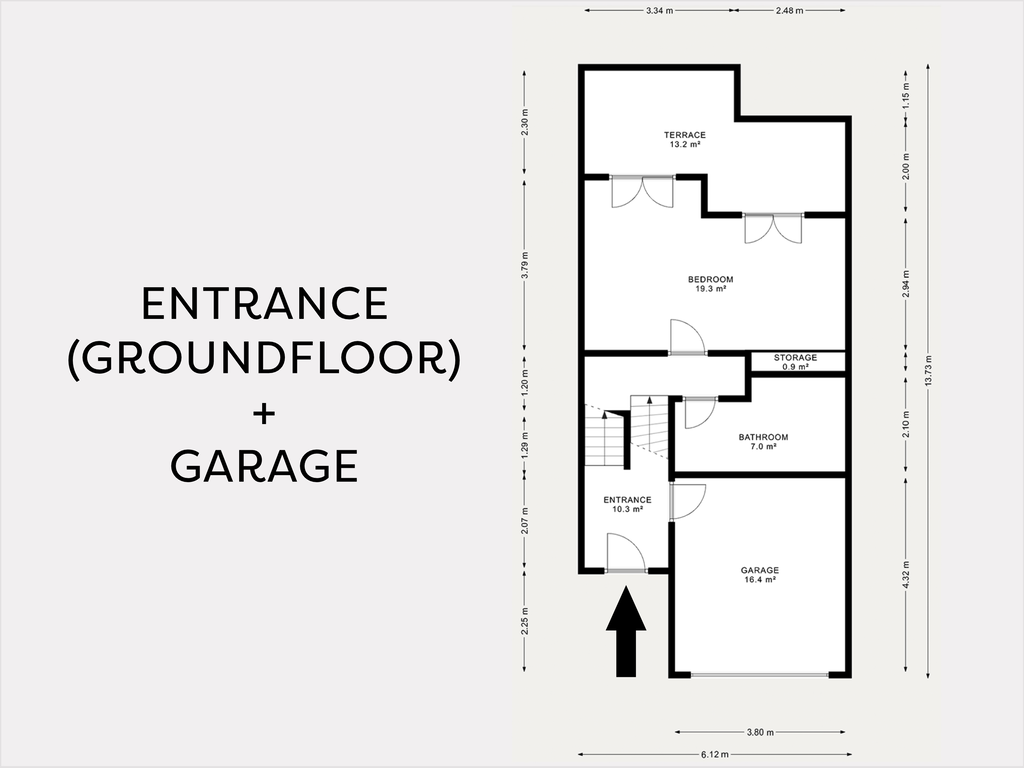 Fastigheten har även ett privat garage om ca 16 m² med direkt access till huset – en praktisk och trygg lösning.