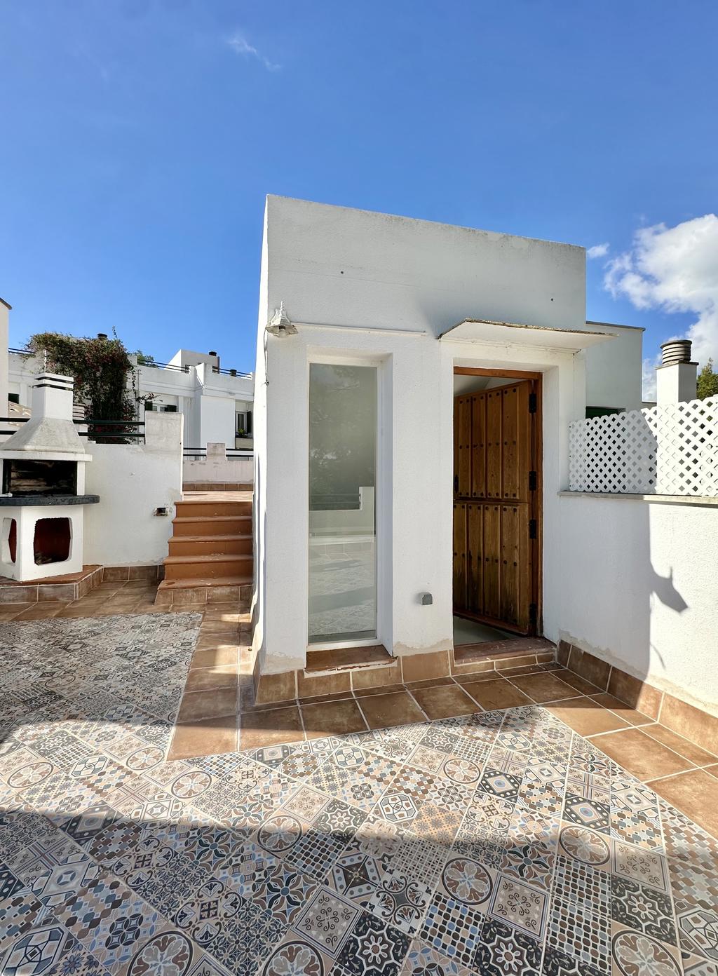 Den magnifika takterrassen på ca 70 m², nås via en trappa från köket, och bjuder på fantastisk utsikt över havet, bergen och grönskande omgivningar – en idealisk plats för middagar under stjärnorna. Dessutom finns två privata terrasser på de nedre våningarna, med direkt utgång från sovrummen.