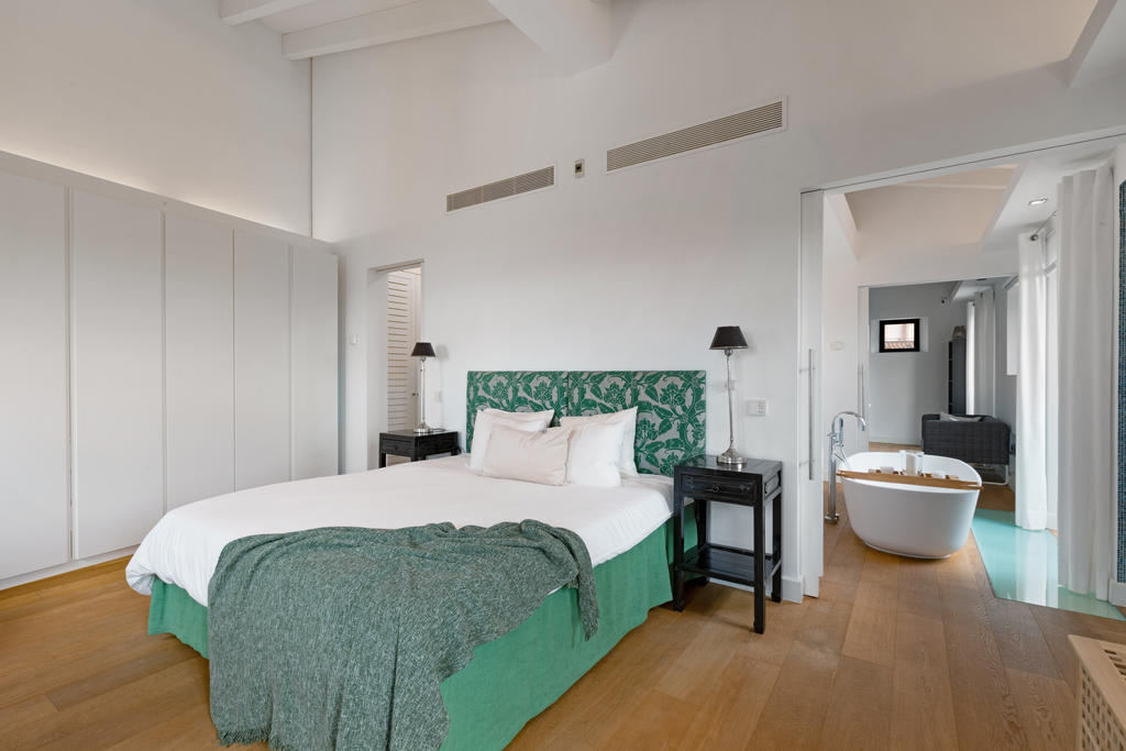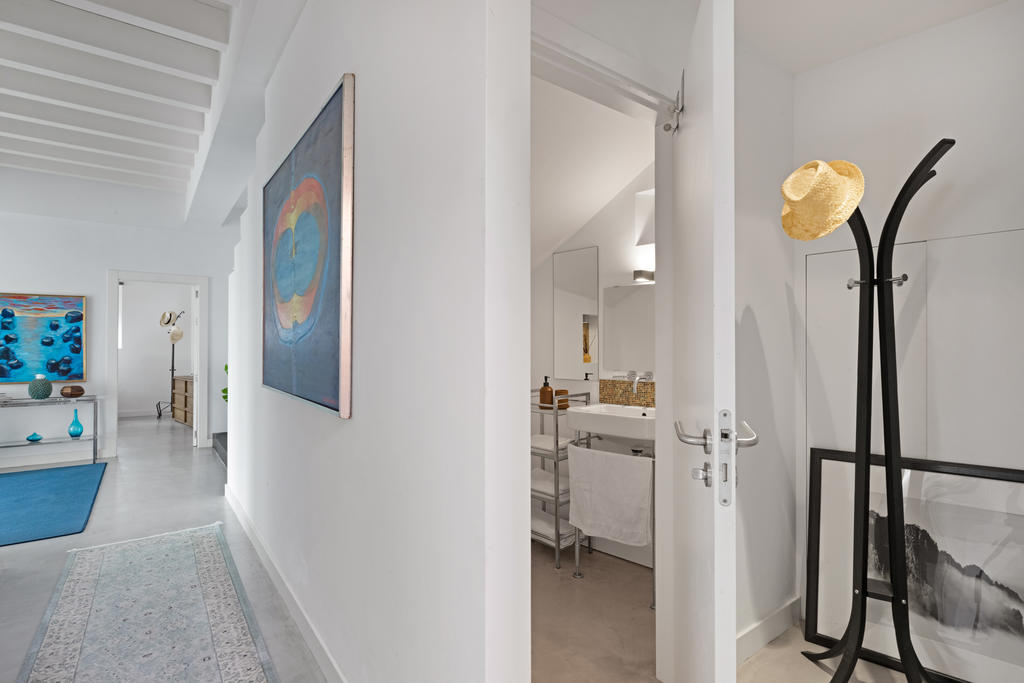 På övervåningen finns mastersviten med två sovrum och eget badrum, där du kan vakna upp till den spektakulära utsikten varje morgon. Hela fastigheten har modern utrustning, luftkonditionering i alla rum och golvvärme på de övre våningarna. Dessutom säljs huset fullt möblerat, redo för sina nya ägare att omedelbart njuta av detta unika hem och livsstilen som Palma erbjuder.