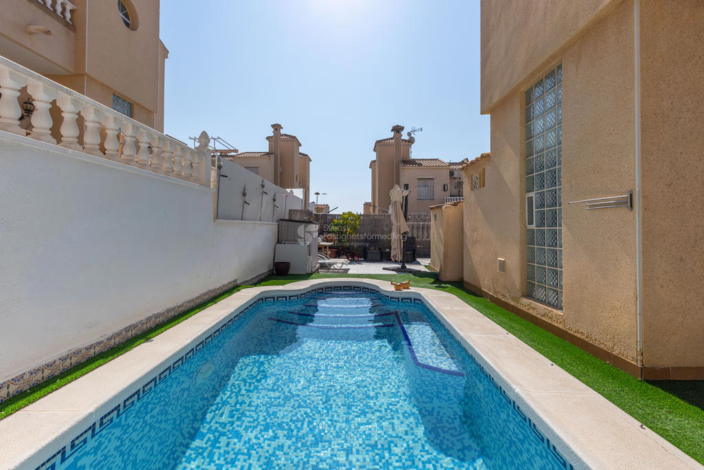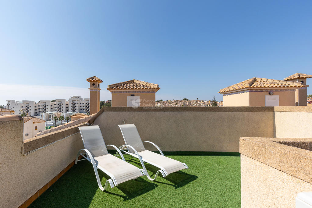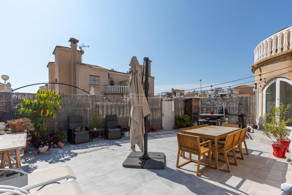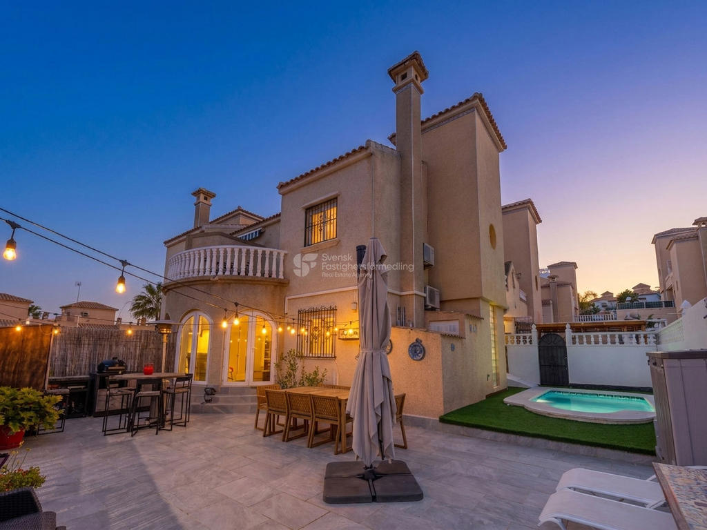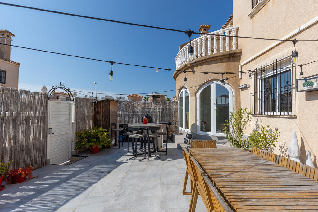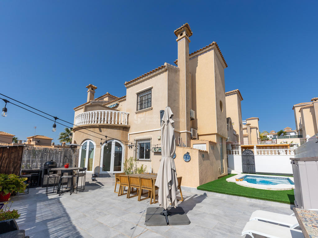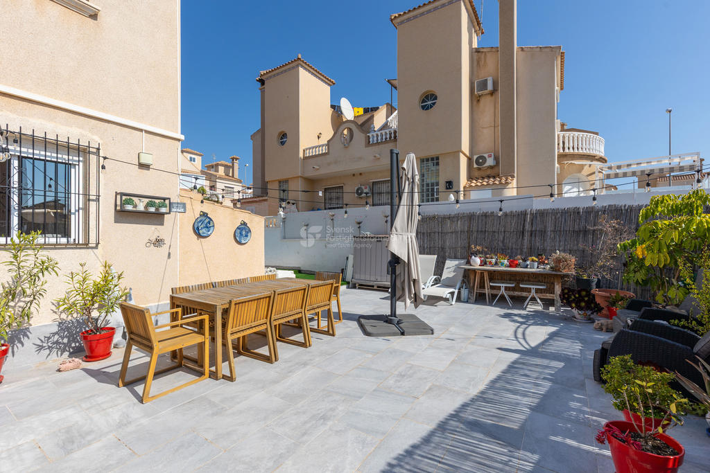 Detta charmiga och stilfulla radhus i Las Filipinas, Villamartin, bjuder på en privat pool och en generös tomt med soligt sydöstläge.