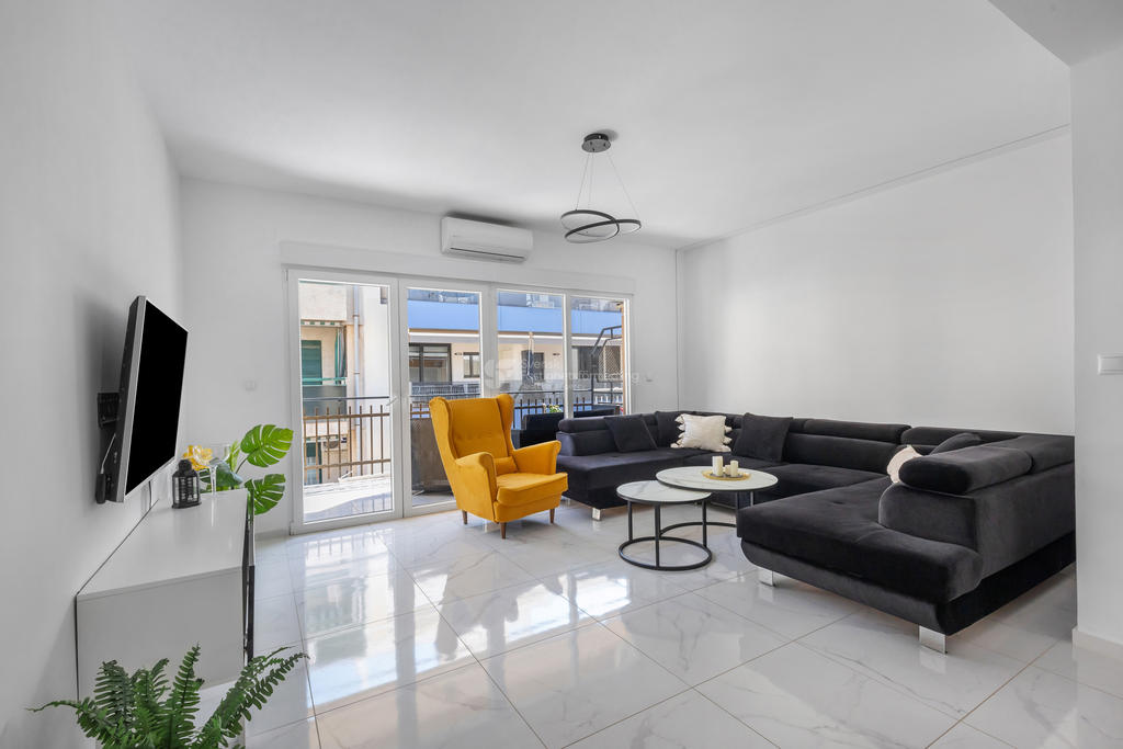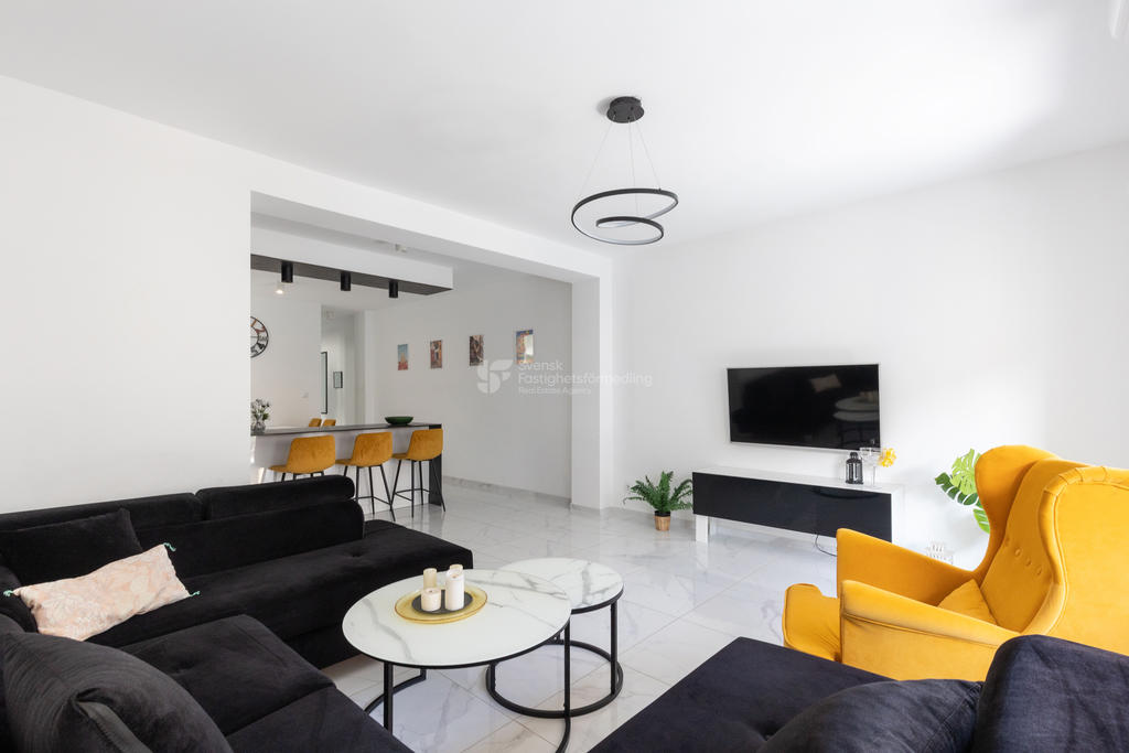 Lägenheten ligger på tredje våningen och erbjuder en stor ljus och öppen planlösning som ger en luftig och modern känsla. Bostaden har nyligen genomgått en totalrenovering där både kök och badrum uppdaterats i stilrena materialval och med stor omsorg om detaljer. Det moderna köket är öppet mot vardagsrummet och skapar en social yta där ljuset flödar in och gör hemmet både inbjudande och trivsamt.