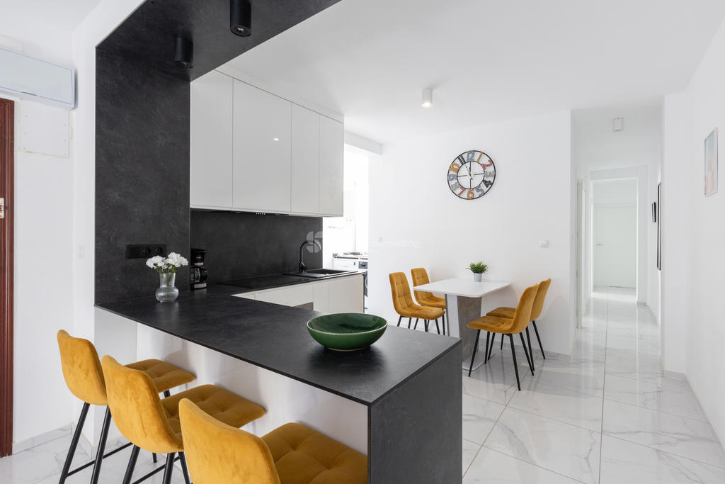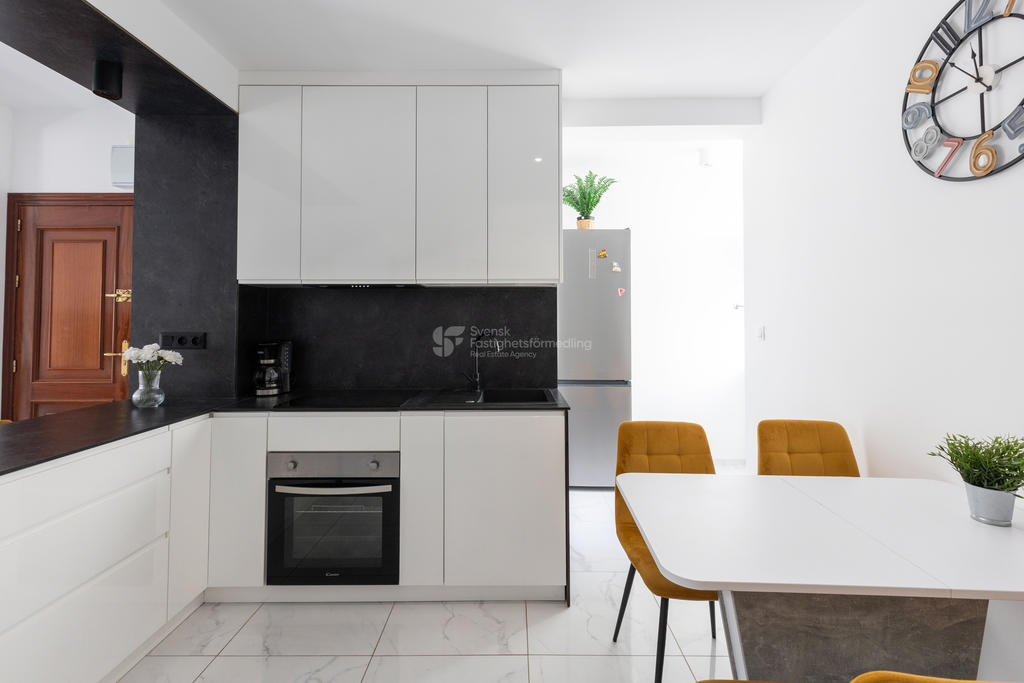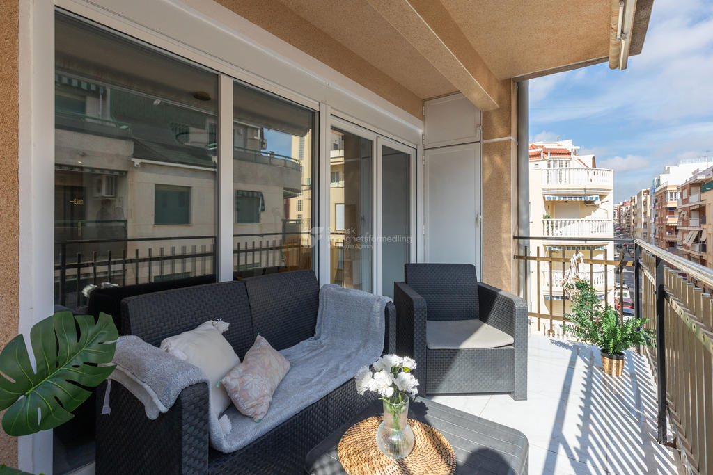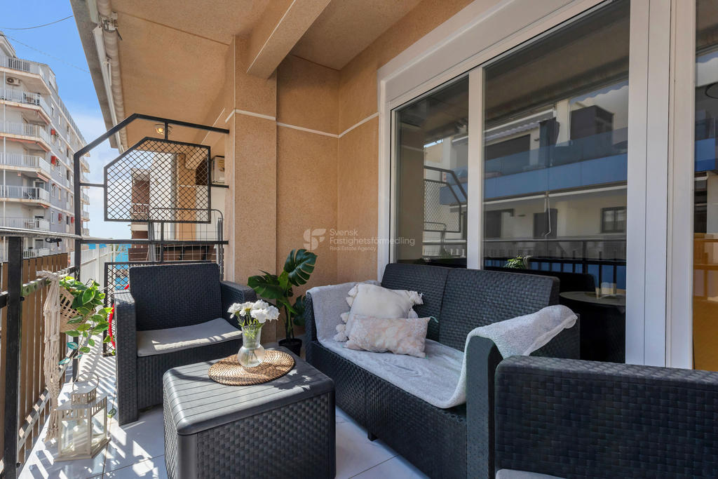 Välkommen till denna smakfullt totalrenoverade lägenhet med ett fantastiskt läge mitt i hjärtat av Torrevieja. Här bor du endast cirka 200 meter från den populära strandpromenaden och den välkända Playa del Cura – stadens mest levande områden där mysiga uteserveringar, restauranger, caféer och butiker skapar en härlig atmosfär året runt. De fina sandstränderna och det glittrande Medelhavet finns bokstavligen runt hörnet.