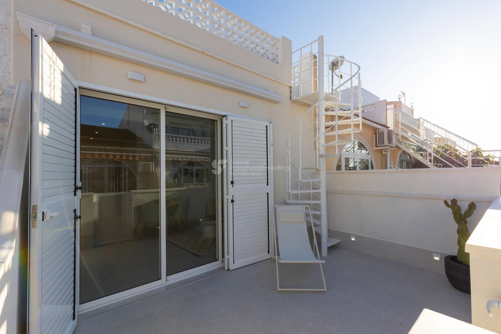 Bostaden har ett mycket attraktivt läge med gångavstånd till mataffärer, restauranger och service, vilket gör den perfekt både som permanentboende och semesterbostad. Med sitt västläge kan du njuta av härlig kvällssol, och den mysiga privata takterrassen bjuder på sol hela dagen – en idealisk plats för avkoppling, middagar eller sociala stunder med familj och vänner.
