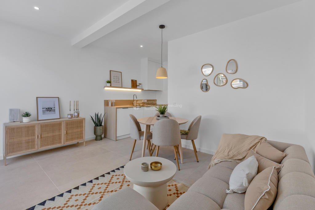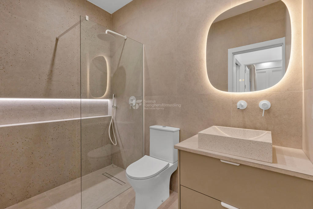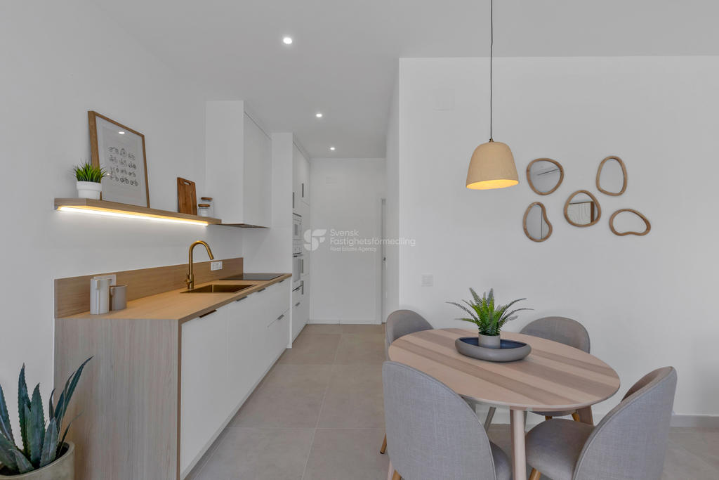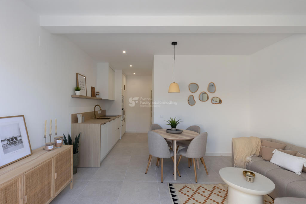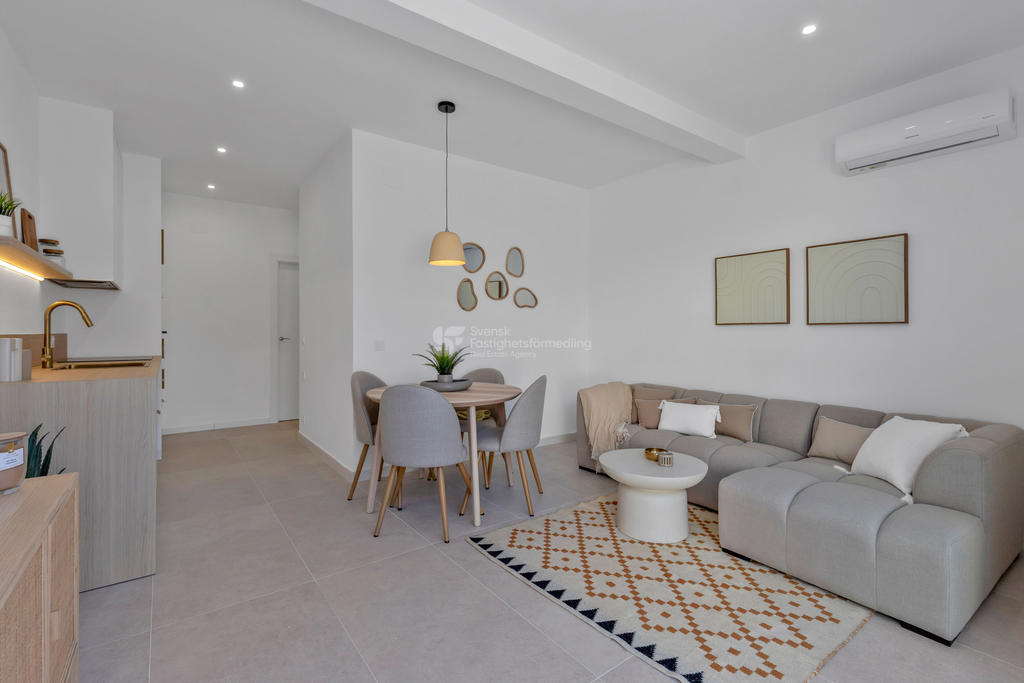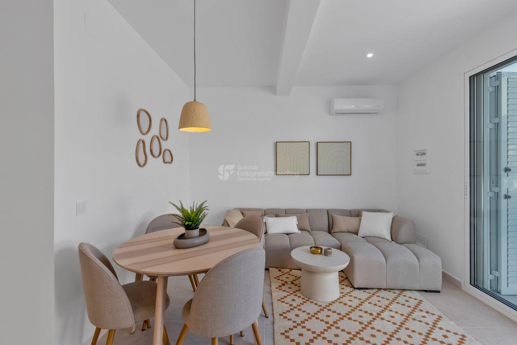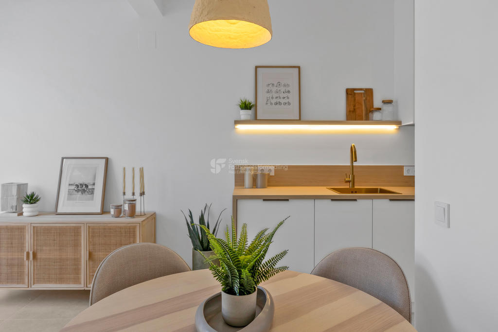Bostaden erbjuder två rymliga sovrum, ett stilrent badrum samt generösa sällskapsytor som gör hemmet både funktionellt och inbjudande. Här är det bara att flytta in och börja njuta av det spanska klimatet och den avslappnade livsstilen på Costa Blanca.
