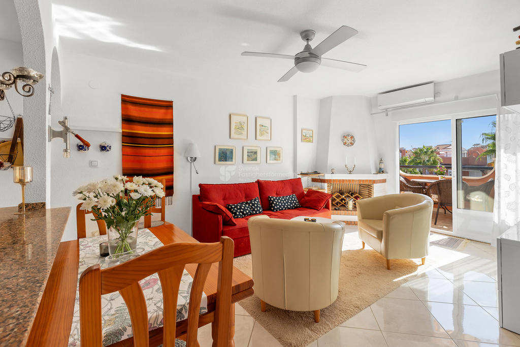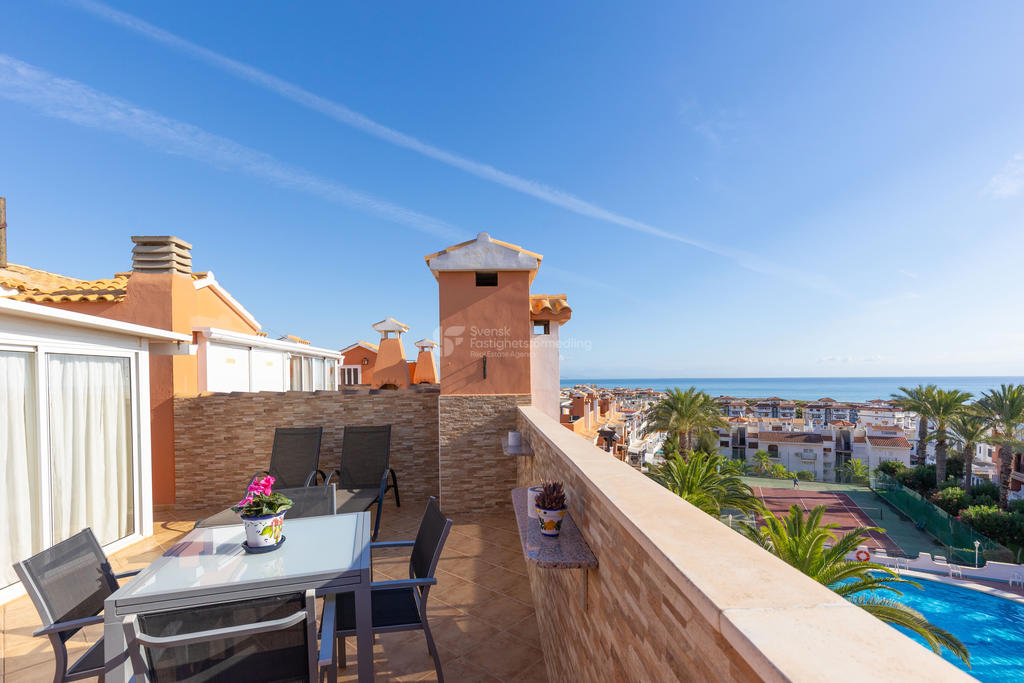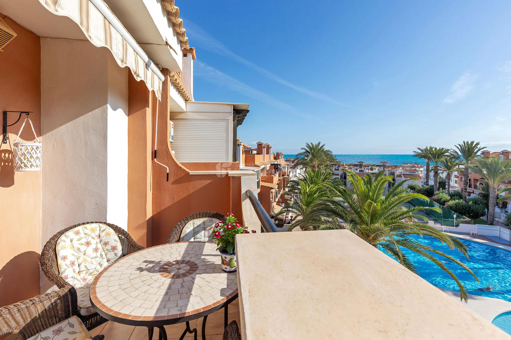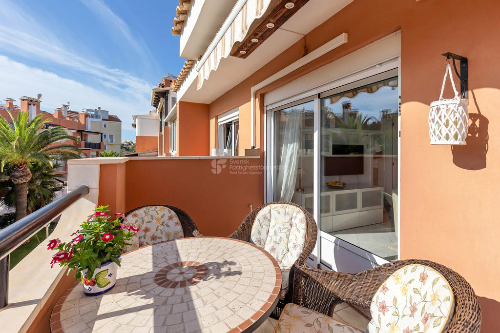 Välkommen till denna lägenhet i ett omtyckt och välskött bostadsområde. Här finns en fin möjlighet att förvärva ett boende med havsutsikt från både balkongen och den privata takterrassen som båda ligger i sydöstläge. Detta är ett bra boende för dig som uppskattar sol och Medelhavet.