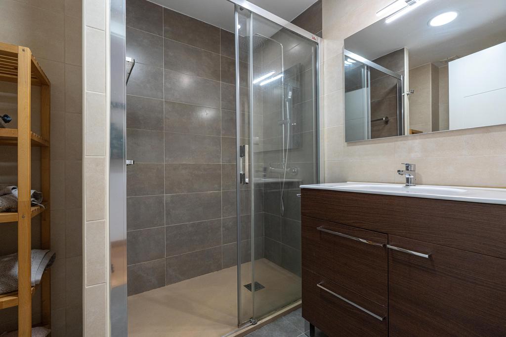 Bostaden erbjuder ett stilrent badrum med dusch samt en separat gäst-WC, vilket ger extra komfort i vardagen. Här är varje kvadratmeter väl planerad med fokus på funktion, ljus och trivsel.