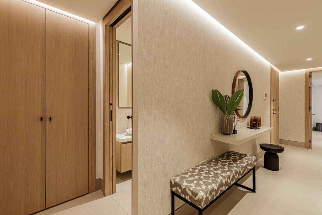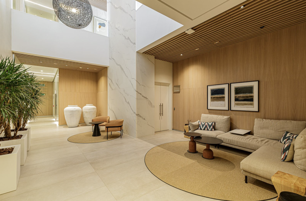 Residents benefit from an exceptional range of five-star amenities, including a 24-hour concierge service, a stunning rooftop infinity pool on the 21st floor with resident bar, a heated indoor pool with solarium, outdoor pool with Balinese beds, and an exclusive spa area featuring sauna, Turkish bath, cold plunge, tropical showers, ice fountain, and additional heated pool. Further facilities include a fully equipped gym with outdoor Pilates area, children’s play and entertainment rooms, and a modern coworking and meeting space with private terraces.