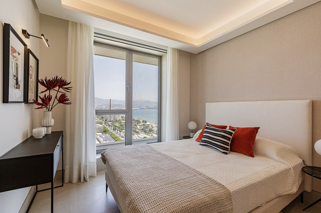 This brand-new apartment is located on the 15th floor of the iconic Málaga Towers, one of Málaga’s most exclusive beachfront residential developments, recently completed in 2024.