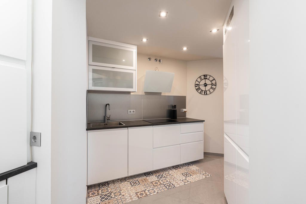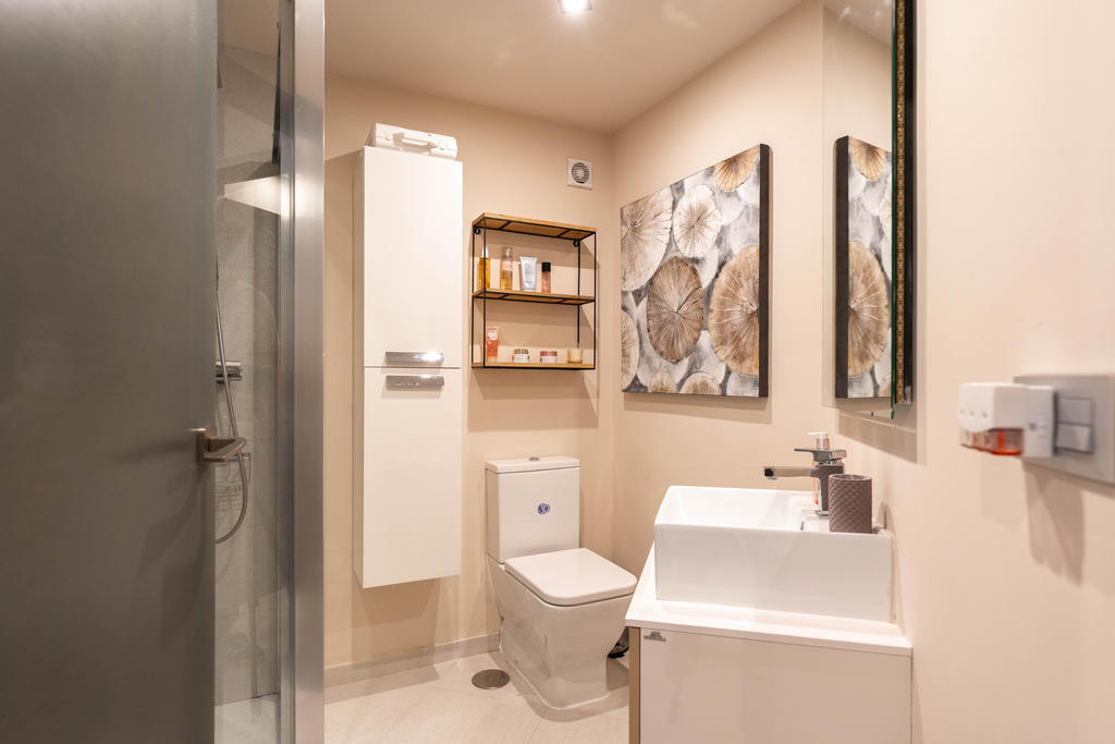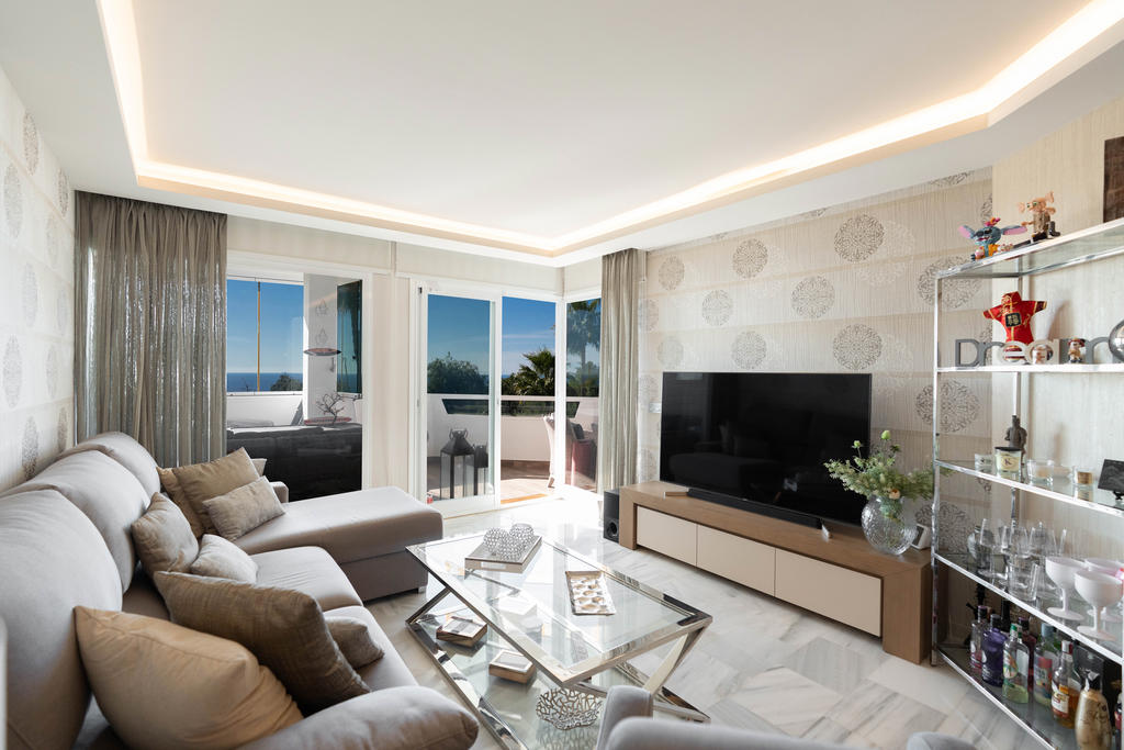 Både från vardagsrummet och “master bedroom” når du den inglasade terrassen om dryga 20 m² i eftertraktat sydvästläge. Terrassen kan enkelt öppnas upp eller stängas helt efter behov och bjuder på en magisk utsikt över Medelhavet. En plats att njuta av året runt!
