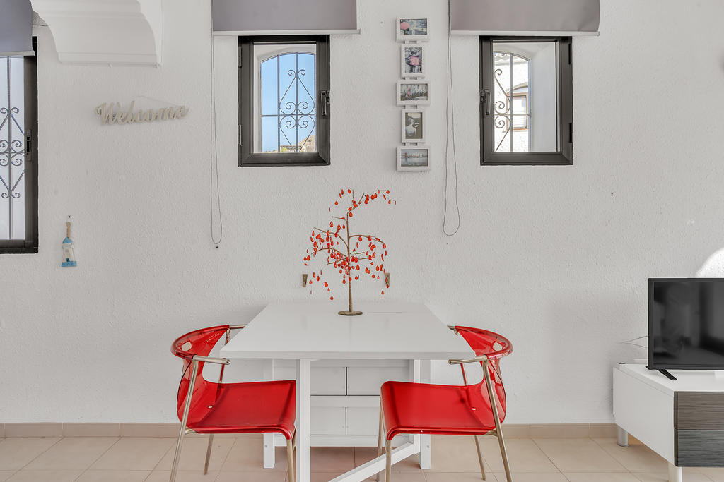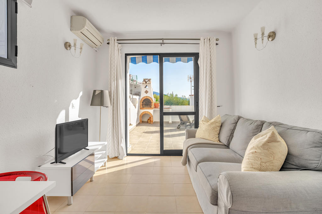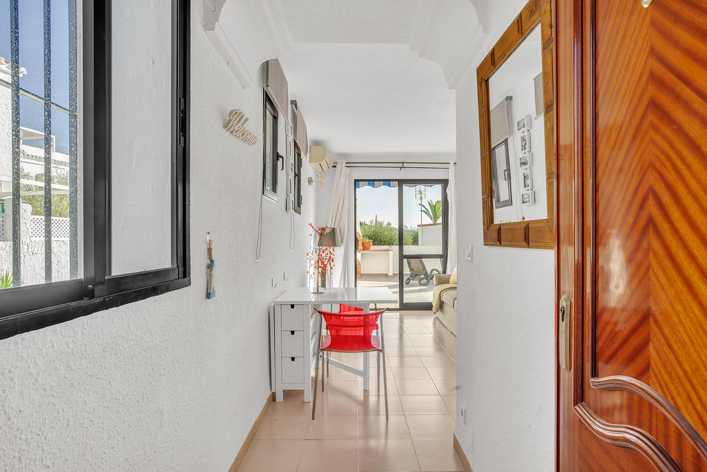 Lägenheten erbjuder ett sovrum, ett badrum och stor terrass – perfekta för att njuta av både sol större delen av dagen och vackra varma grillkvällar. Det stora gemensamma poolområdet bara 1 min bort bidrar till den avkopplande och sociala atmosfären i detta omtyckta område.
