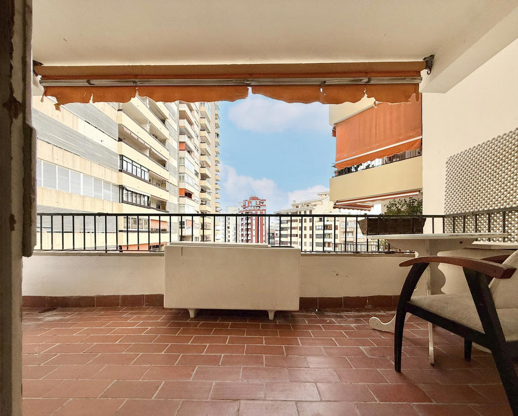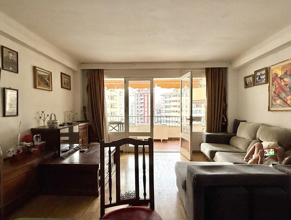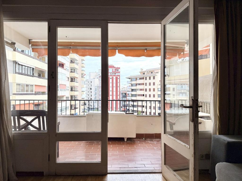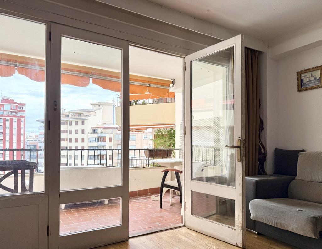 Lägenhet med terrass och stor renoveringspotential, vid Plaza Madrid i centrala Palma.