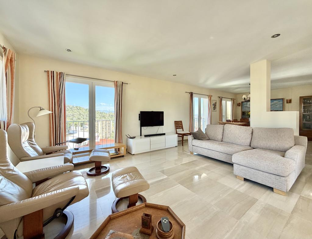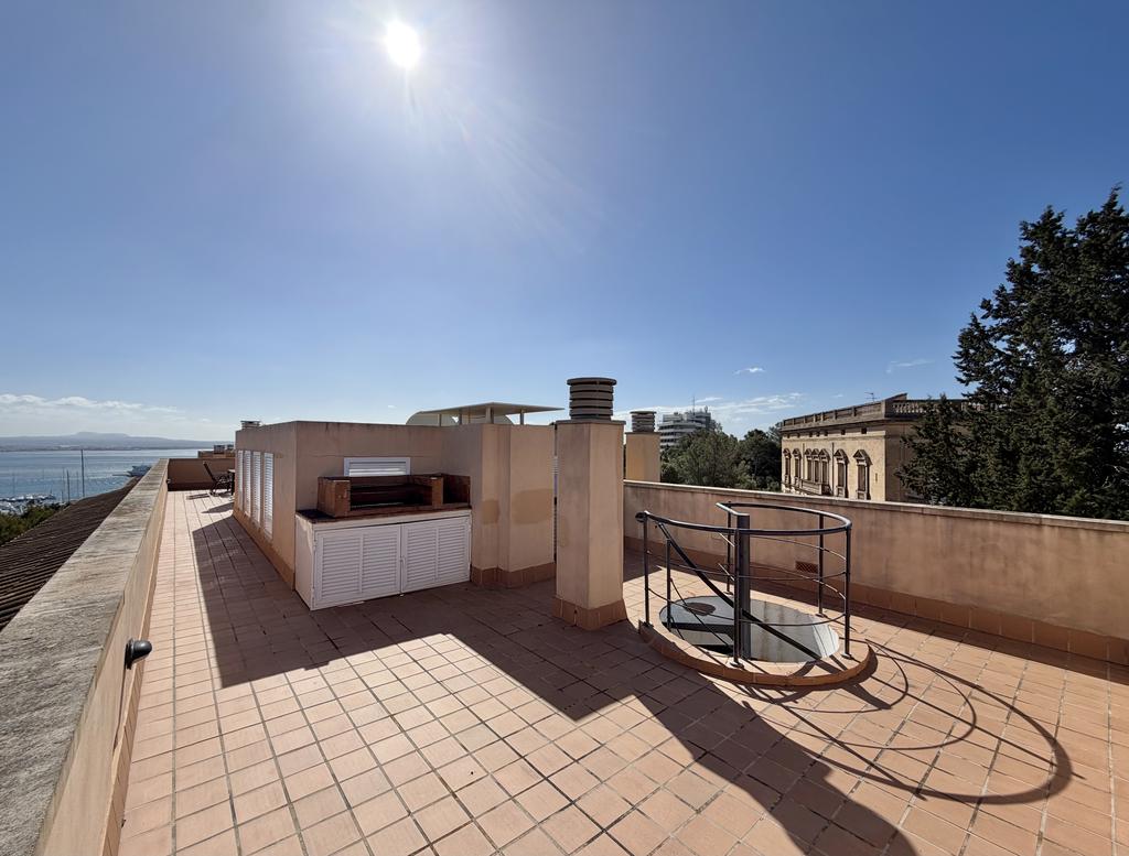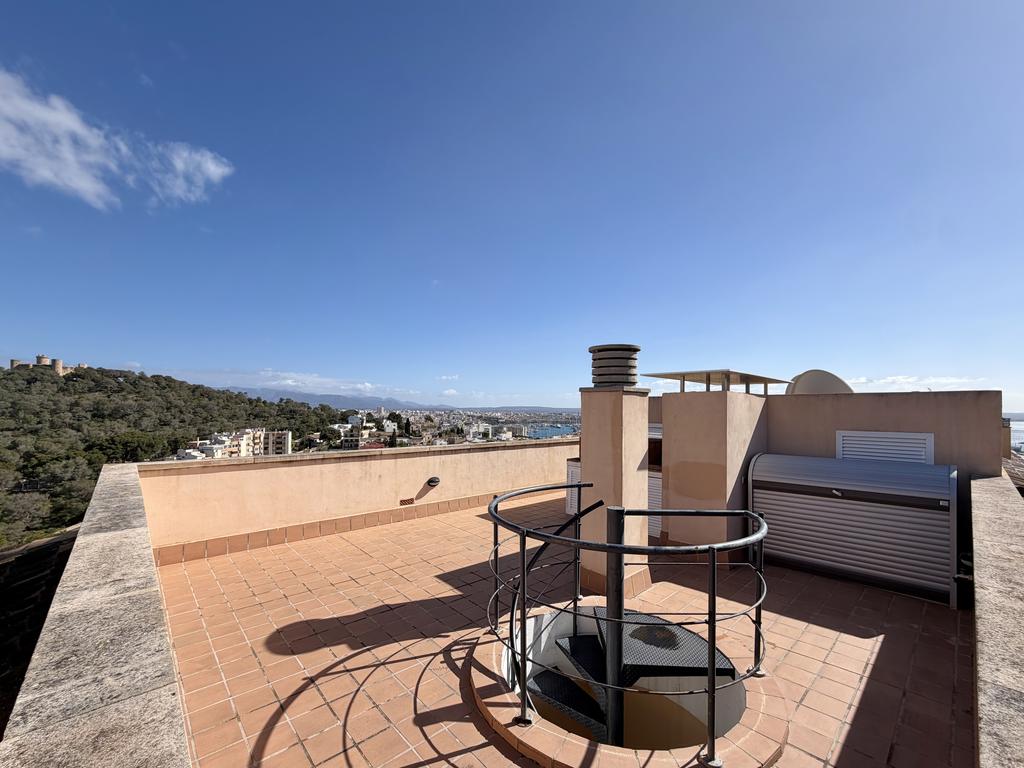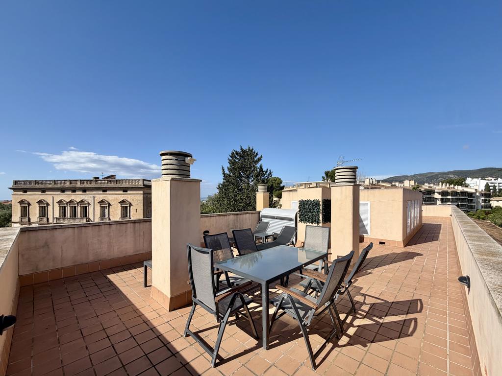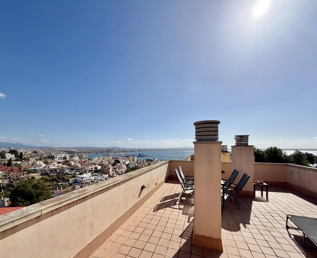 En av bostadens absoluta höjdpunkter är den privata takterrassen med fantastisk utsikt över Palma och omgivningarna. Här finns gott om plats för både avkoppling och sociala tillställningar, och tillsammans med de övriga terrasserna kan du njuta av solen under hela dagen.