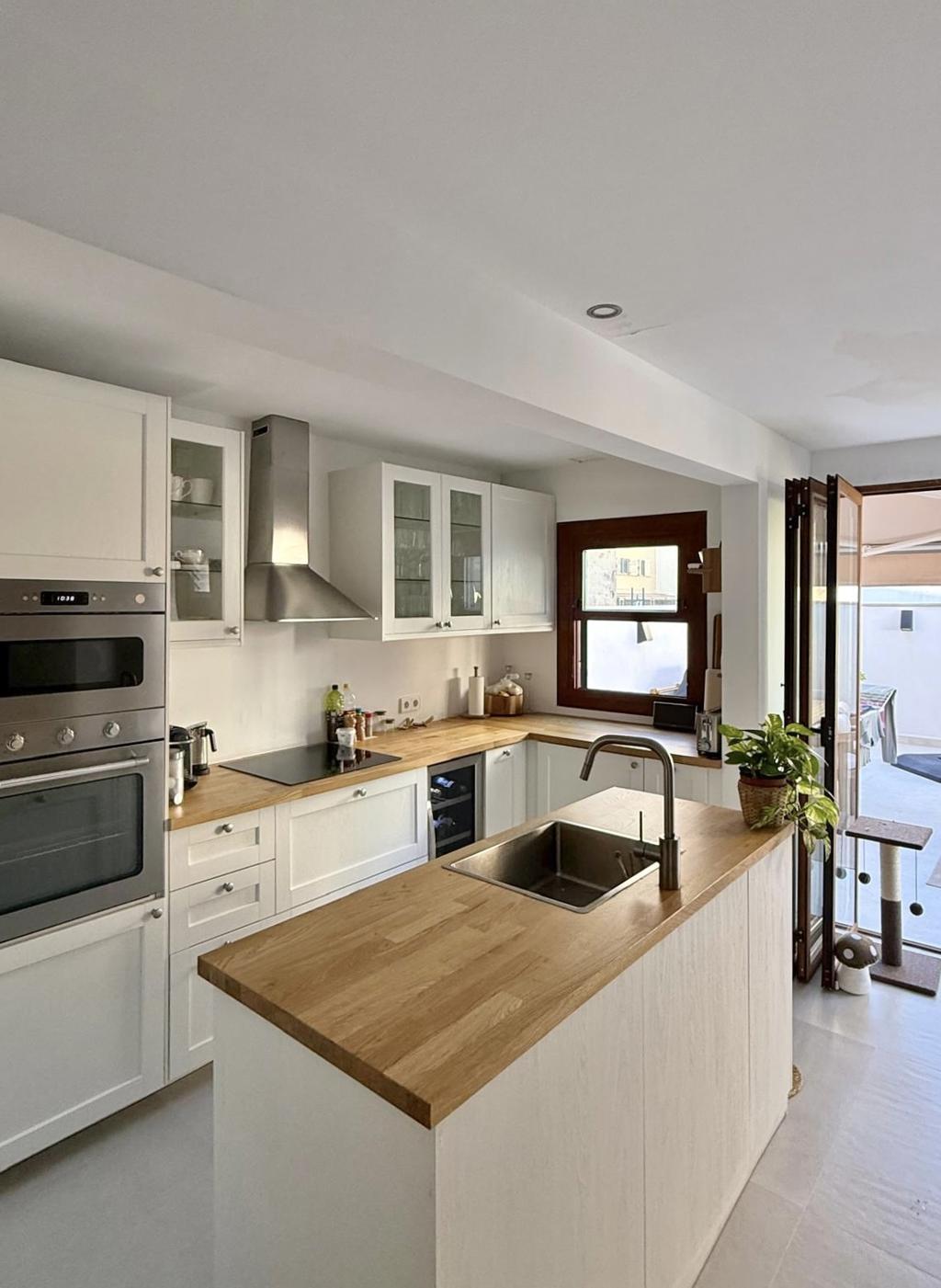 Den stora, soliga terrassen är en självklar samlingspunkt. På terrassen har man låtit bygga ett utekök – perfekt för långa middagar, umgänge och avkoppling under Mallorcas många soltimmar. Ute och inne smälter samman och skapar en generös känsla långt över kvadratmetrarna.