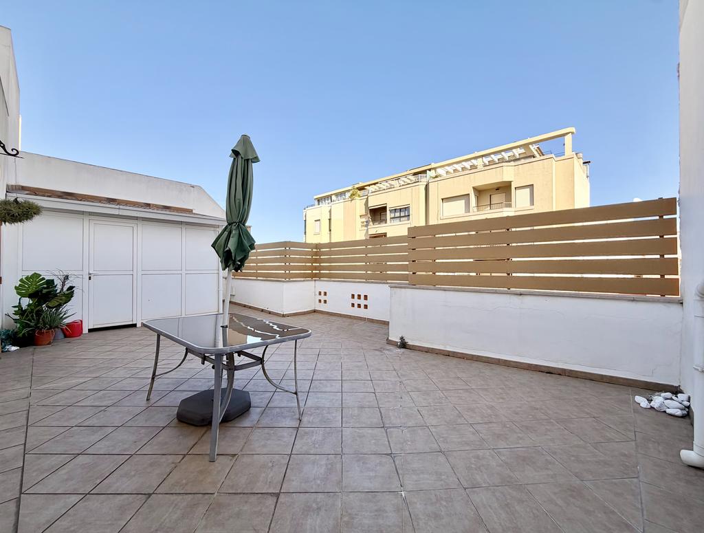 Lägenheten inkluderar exklusiv användning av byggnadens takterrass, som innehåller 3 förråd, totalt på 74 m², en del utav det har renoverats för att bli en mysig gästlägenhet med eget kök och badrum.