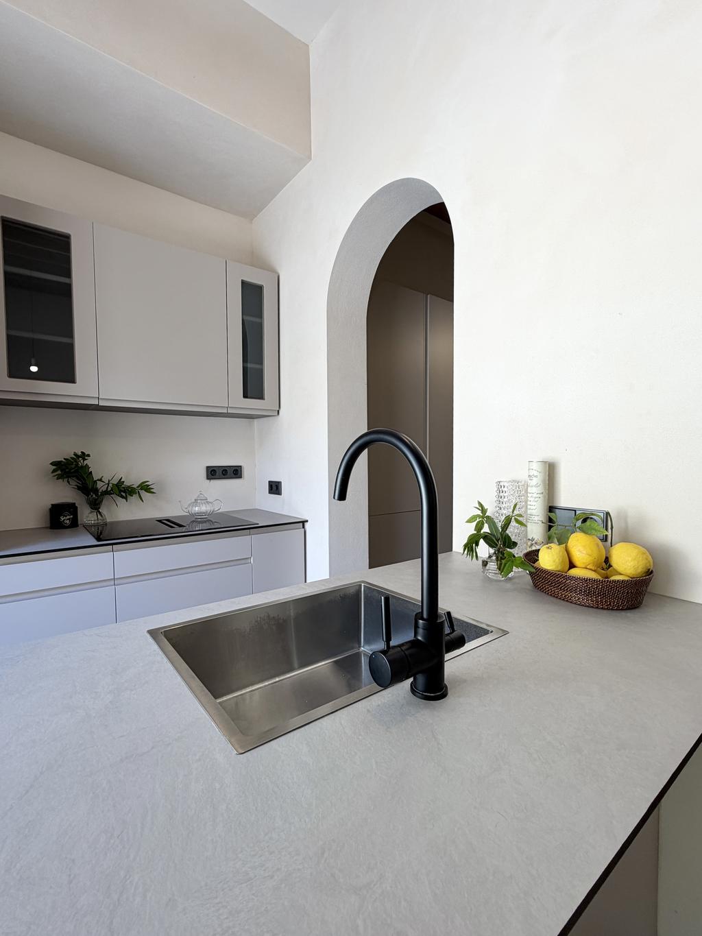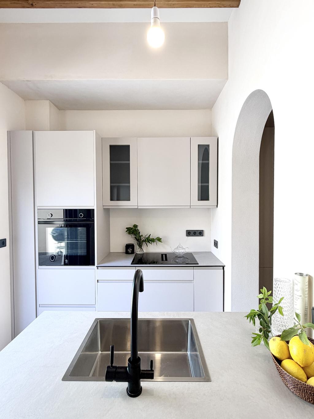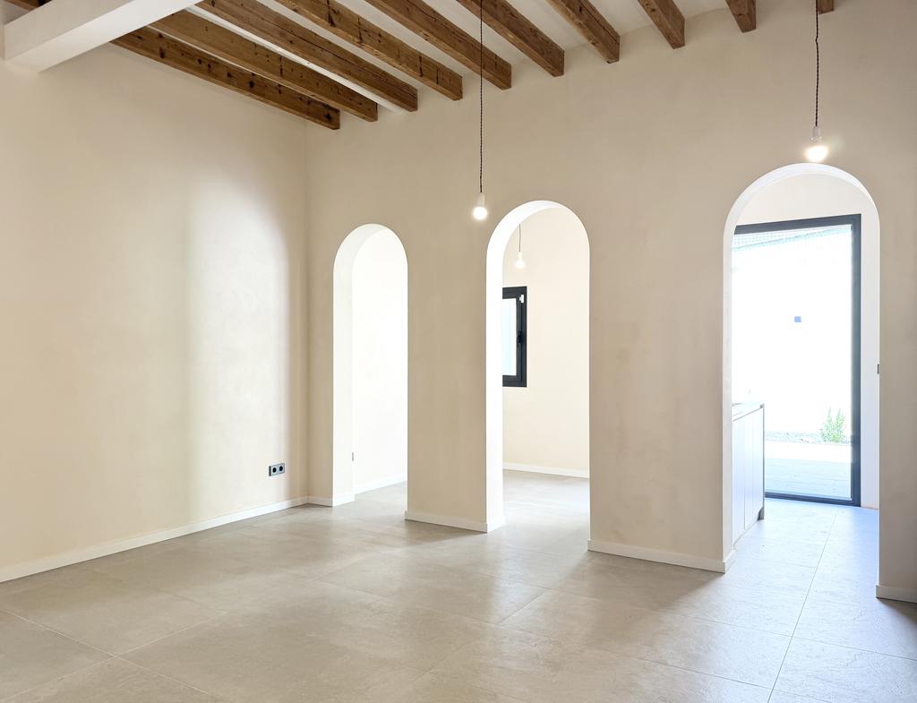 Lägenheten disponeras över ett rofyllt sovrum samt ett stilrent badrum med noggrant utvalda material, inklusive handfat i vacker mallorkinsk sten. Det rymliga vardagsrummet med kök i öppen planlösning skapar en social och inbjudande atmosfär, perfekt för både vardag, socialt umgänge och festliga tillfällen.