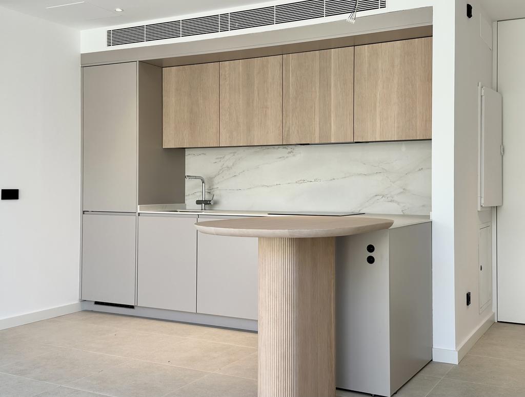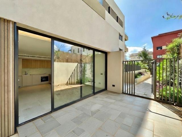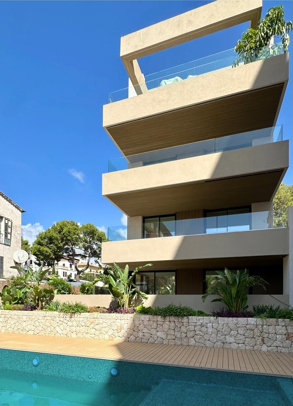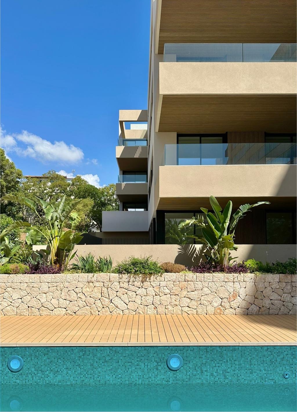 Exklusiv bottenvåning i ett nybyggt hus med stor privat uteplats & direkt tillgång till poolområdet.