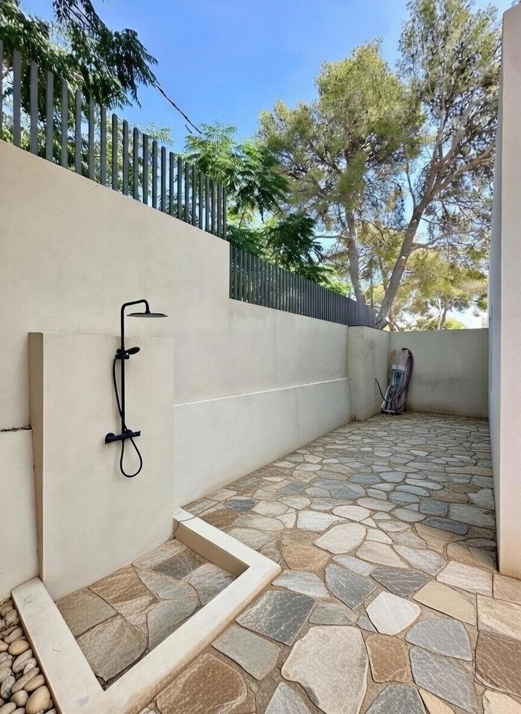 Från uteplatsen finns en grind som tar en direkt till poolområdet och de gemensamma ytorna.