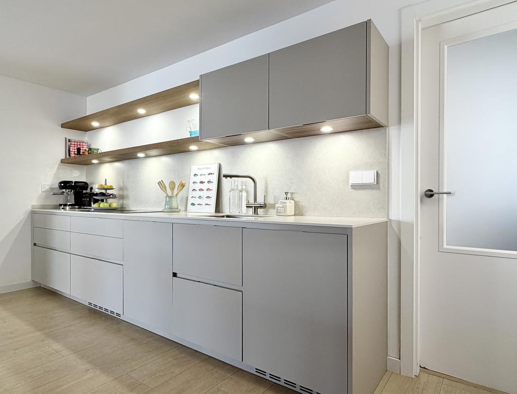 Köket är snyggt och funktionellt med bra arbetsytor, god förvaring och en modern, stilren känsla.