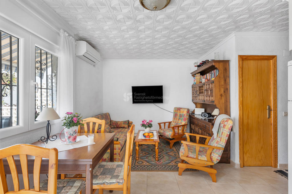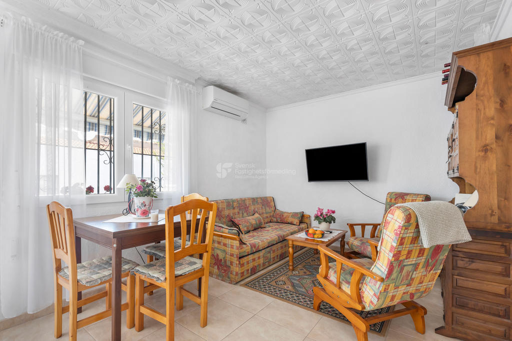 Bostaden erbjuder 2 sovrum, 1 badrum samt ett ljust vardagsrum med öppet kök – en social och trivsam planlösning som passar både permanentboende och semesterliv.