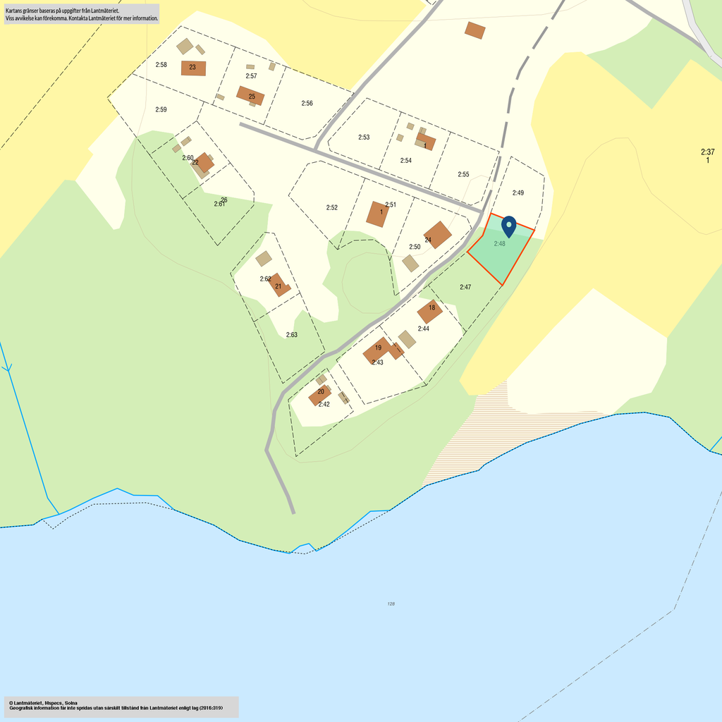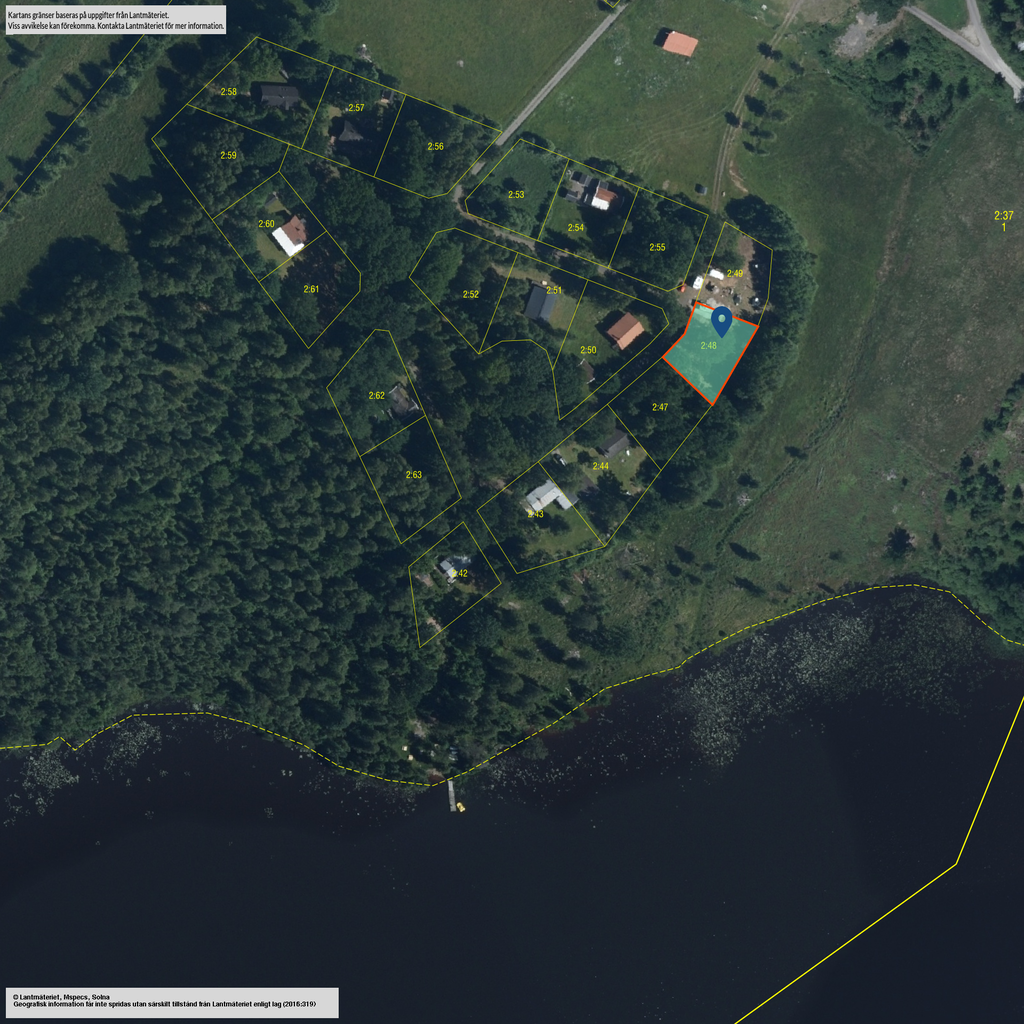 Två av tomterna, 2:48 och 2:49, ligger närmast vattnet och har ett attraktivt läge med fin känsla av sjönära boende. Här finns goda möjligheter att skapa ett trivsamt fritids- eller permanentboende i en miljö som präglas av stillhet, grönska och utsikt över det omgivande landskapet. Dessa tomter erbjuds för 200 000 kronor styck. Den tredje tomten, 2:52, ligger något längre från vattnet men fortfarande i samma natursköna område och erbjuds för 150 000 kronor.