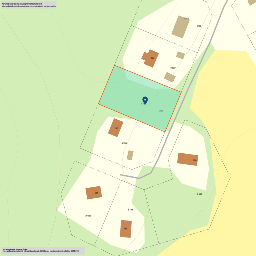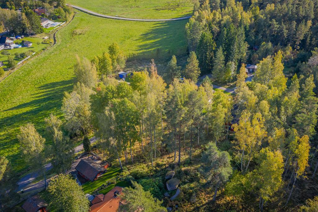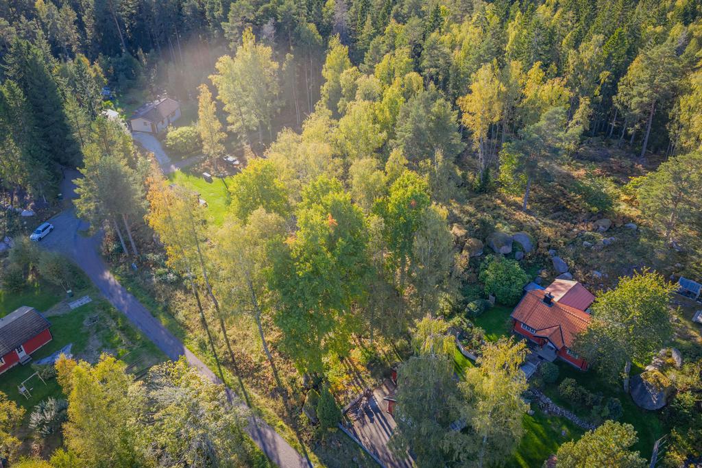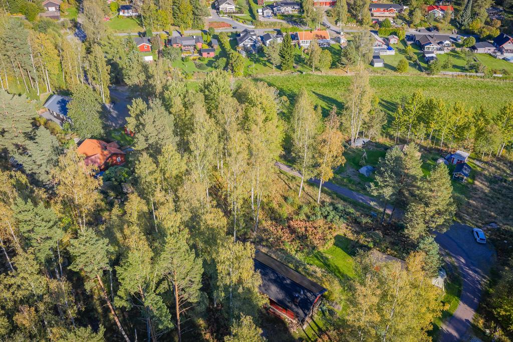 Denna generösa tomt omfattar hela 1 626 kvm med läge mot allmänning i trädgårdssidan. Vägen är en återvändsgata där en handfull hus samsas med stor, öppen grönyta intill och skog åt andra hållet som en grönskande vägg.