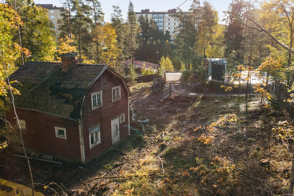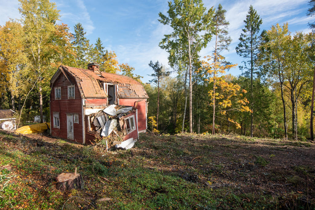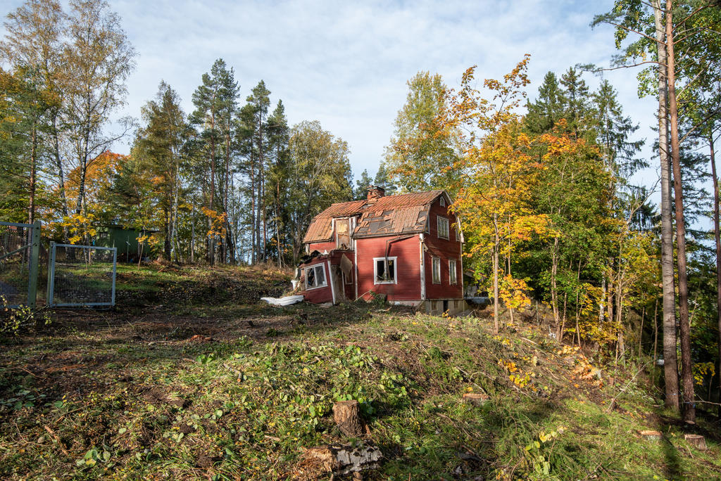 Befintligt hus i rivningsskick.