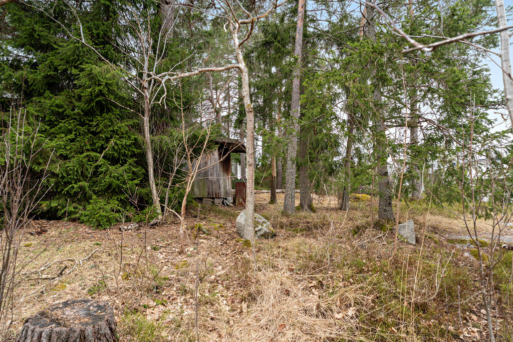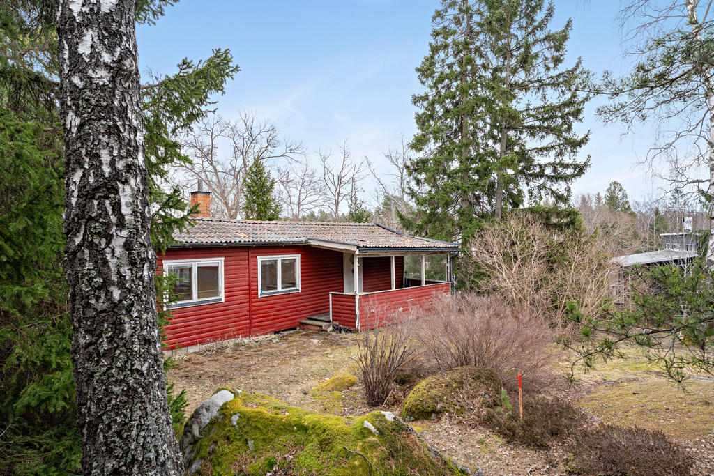 Tomten är bebyggd med ett enkelt fritidshus