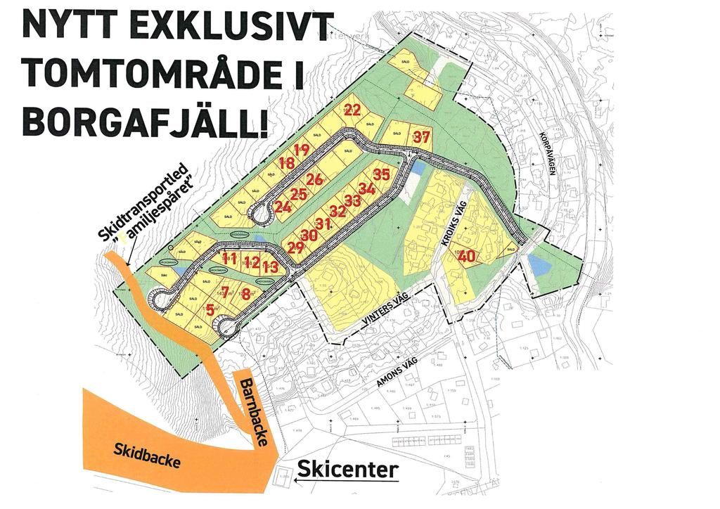Tillfälle för familjen som vill skapa sitt eget boende på centralt läge i byn med gångavstånd till skidbacken och byns centrum. Stora tomter med byggrätt upp till 20% av fastighetsarean, men max 300 kvm per fastighet inom egenskapsområdet. Enormt påkostat vägnät i hela området med kommunalt VA, EL samt fiber framdraget till tomtgräns. Anslutningsavgifter betalas av köparen. Tomternas storlek variera mellan ca 900 till 1600 kvm. För information om byggrätt och detaljplan, se Plankarta. Varmt välkommet till ett fint område i hjärtat av byn!